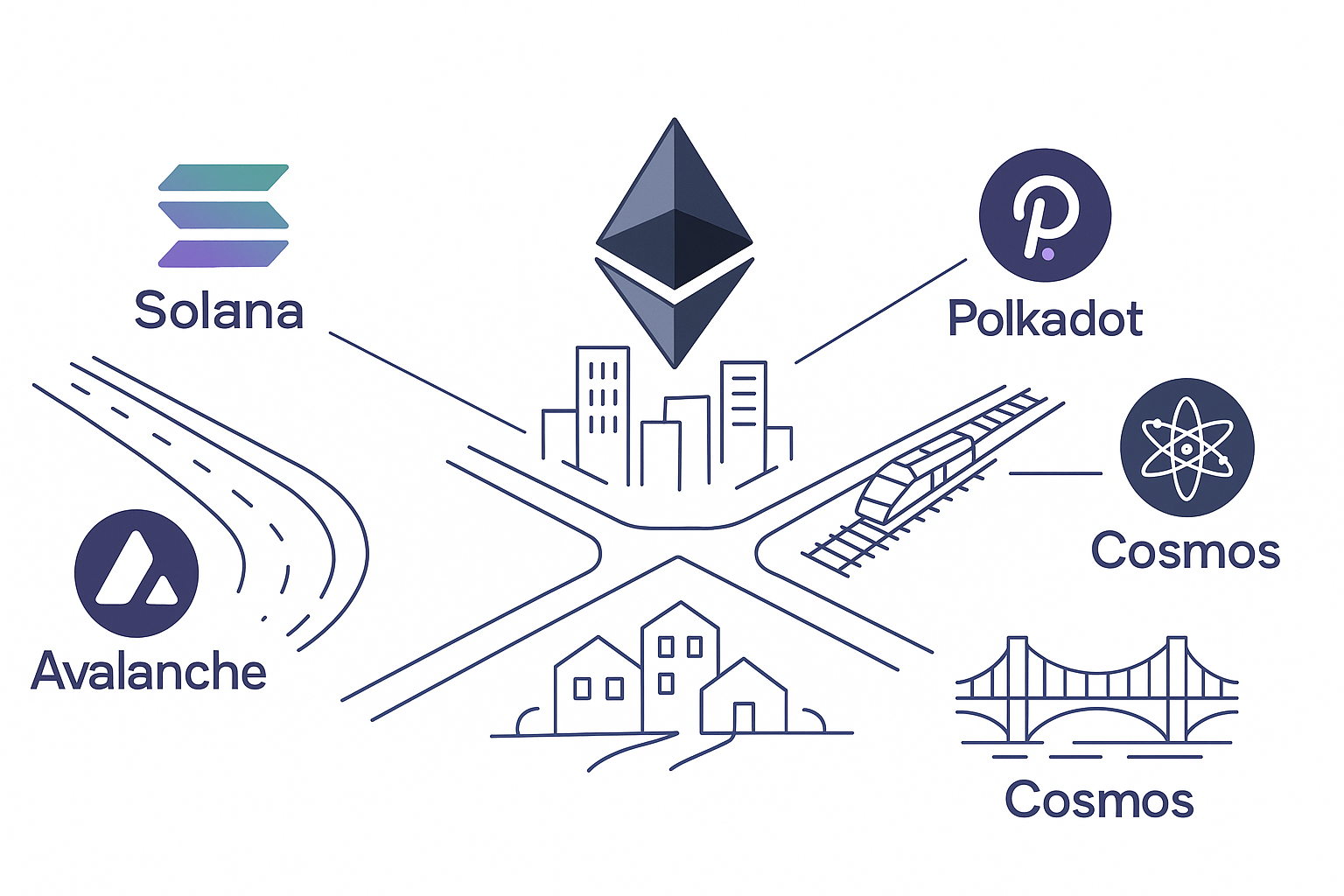 이더리움은 블록체인 생태계의 중심에서 오랫동안 ‘표준’ 역할을 해왔습니다. 하지만 기술이 성숙하면서 다른 프로젝트들이 저마다의 전략으로 등장했고, 이제는 여러 경쟁자들이 각자의 방식으로 시장을 넓혀가고 있습니다. 이번 글에서는 Avalanche, Polkadot, Cosmos, Solana라는 네 개의 주요 블록체인을 중심으로, 이더리움과 어떤 차이를 보이는지 살펴보려 합니다.
