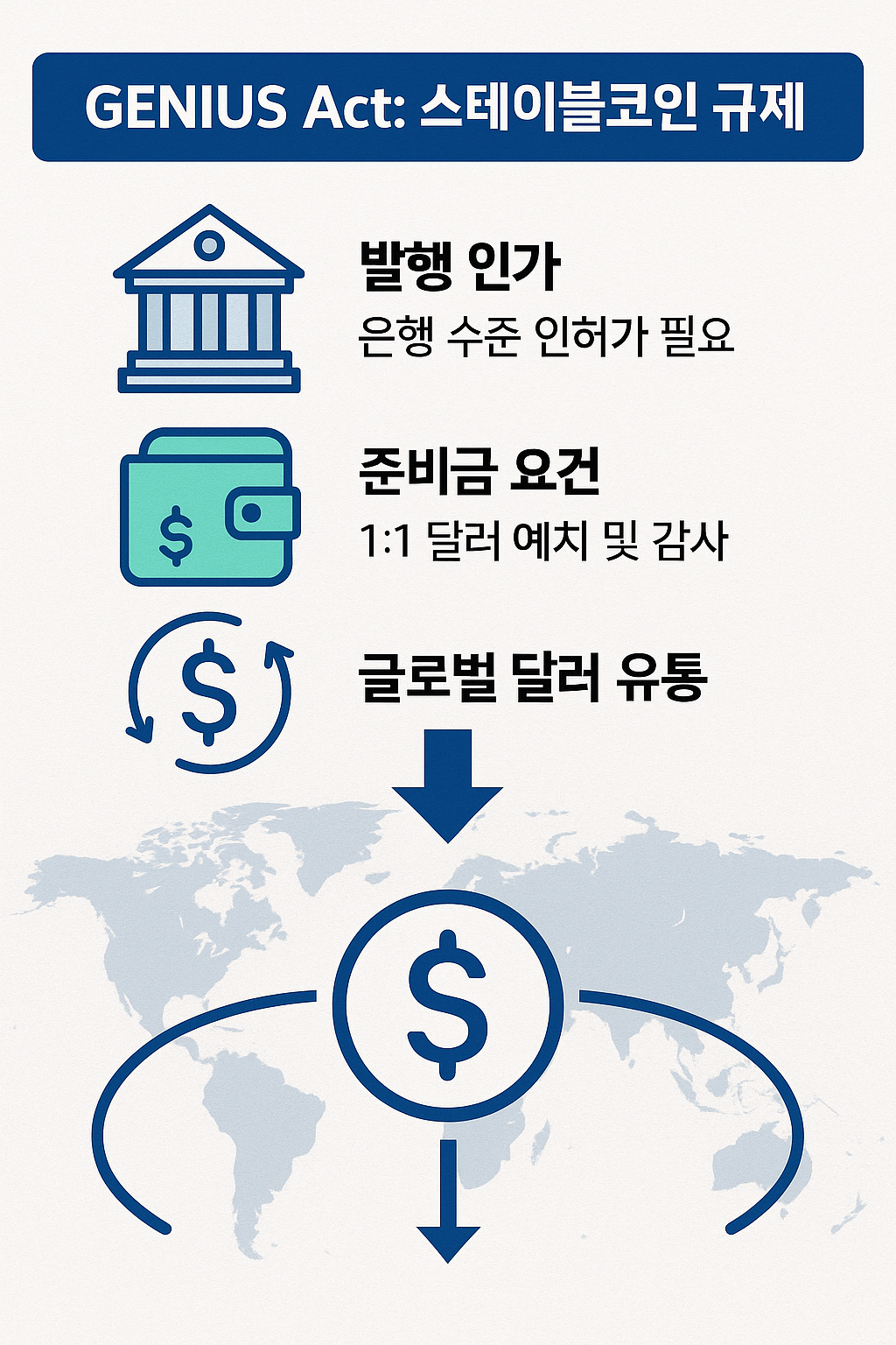 스테이블코인의 법제화는 사실상 디지털 달러를 글로벌 결제 네트워크에 공식 편입하는 효과가 있습니다.